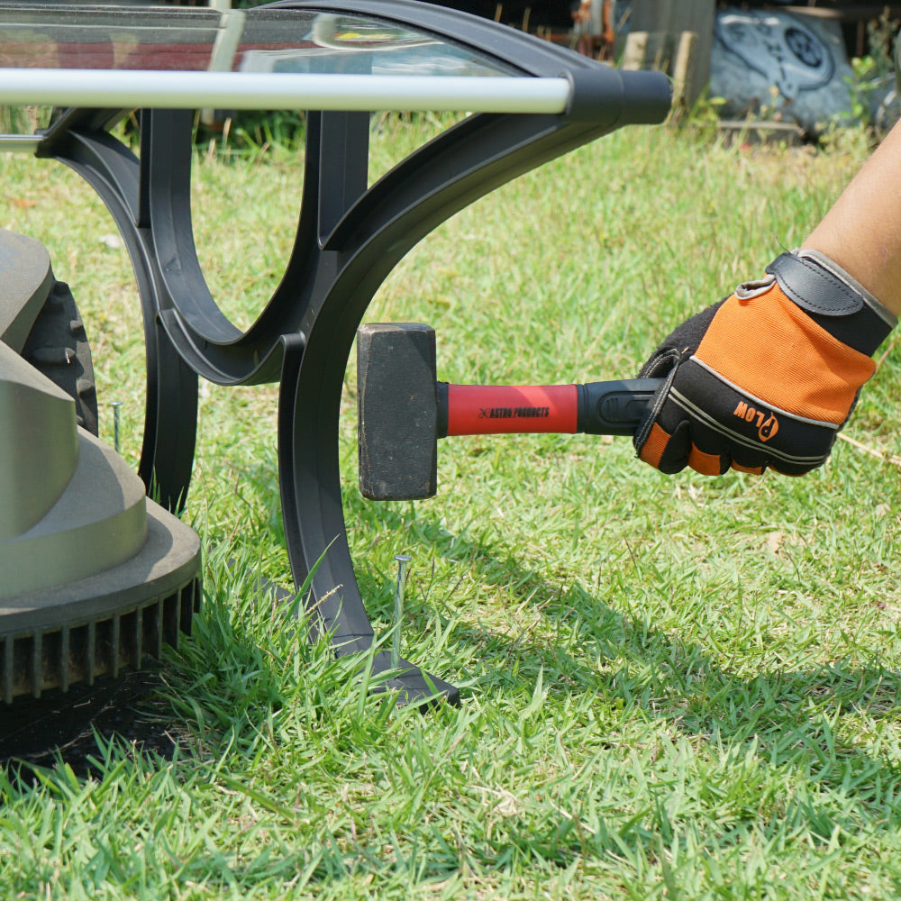 PLOWのロボット芝刈り機AGCシリーズ用ステーションハウスは、雨から大切な芝刈り機を守ります。ポリカーボネート製の屋根は耐久性が高く、1000mmの奥行きで機械の上部をしっかり確認可能。組み立ては簡単に4箇所のネジ留めと4本の杭打ちだけで完了します。前方の350mmの開口部は幅広い機種にも対応し、AGCシリーズ以外の芝刈り機にも適しています。雨除けにより機械の劣化を抑え、長く快適に使えます。